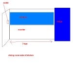On the dining side of the kitchen, I will have a counter that runs right below the window. There is not enough room on either side of the window for an outlet, because one side is next to a wall and the other side in next to the fridge. The room between the counter any the window is very minimal and is not enough for a outlet.